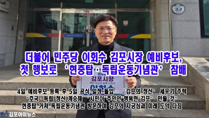 ÀÌ¾î µ¶¸³¿îµ¿±â³ä°üÀ» ãÀº ÀÌ È帴 ±èÆ÷ Ç×Àϵ¶¸³¿îµ¿ Èñ»ýÀÚµéÀ» Ã߸ðÇϸç, Ã⸶ ¼±¾ð¹®¿¡¼ ¹àÈù ‘±èÆ÷ ¹Ì·¡ ºñÀü’À» ´Ù½Ã Çѹø °Á¶Çß´Ù. ±×´Â “±èÆ÷´Â ¶ß°Å¿î µ¶¸³ÀÇ ¿ª»ç°¡ »ì¾Æ ¼û ½¬´Â °íÀå”À̶ó¸ç, “¼±¿µéÀÇ ÅõöÇÑ ¾Ö±¹Á¤½ÅÀ» µ¿·Â »ï¾Æ Áö¿ª³»ÀÇ ½Ã¹ÎÅëÇÕ°ú ¼ºÎ±Ç ±¤¿ª Â÷¿øÀÇ ¿¬´ë Àü·«À¸·Î ¼¿ï 5È£¼± ±èÆ÷ ¿¬Àå µî ±¤¿ª±³Åë ¹®Á¦¸¦ Ç®¾î³»°í, ±èÆ÷¸¦ AI ¹Ì·¡µµ½Ã·Î ´ëÀüȯ½ÃŰ°Ú´Ù”°í ¿ª¼³Çß´Ù.