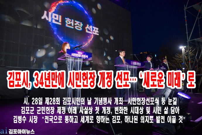 ±èÆ÷½Ã°¡ 34³â¸¸¿¡ ½Ã¹ÎÇåÀåÀ» °³Á¤ ¼±Æ÷ÇÏ¸ç ½Ã¹Î°ú ÇÔ²² ¹Ì·¡¸¦ ¹àÈ÷´Â Á¦28ȸ ±èÆ÷½Ã¹ÎÀÇ ³¯ ±â³äÇà»ç¸¦ °³ÃÖÇß´Ù. ‘±èÆ÷, ½Ã¹ÎÀÇ ºûÀ¸·Î ¹°µé´Ù’¶ó´Â ºÎÁ¦·Î °³ÃÖµÈ À̳¯ ±â³ä½Ä¿¡¼´Â ±èÆ÷ÀÇ ¹ßÀüÀ» À§ÇØ °øÀ» ¼¼¿î ½Ã¹Î 86¸í¿¡°Ô ¼ö»óÇϸç, ±èÆ÷ÀÇ °¡Ä¡¿Í ½Ã¹ÎÀÇ ¾à¼ÓÀ» ´ãÀº »õ·Î¿î ½Ã¹ÎÇåÀåÀÌ ¼±Æ÷µÆ´Ù.